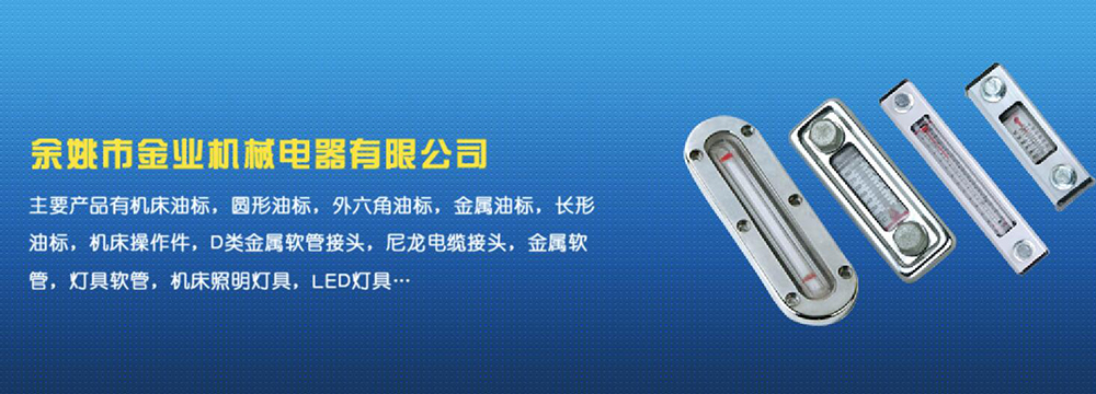 余姚市金業機械電器有限公司主要產品有機床油杯,圓形油標,外六角油標,金屬油標,長形油標,機床操作件,D類金屬軟管接頭,尼龍電纜接頭,金屬軟管,燈具軟管,機床照明燈具,LED燈具,DGT型線路軟管防護套,TL型鋼制電纜手軌,電纜尼龍拖鏈,可調塑鋼冷卻管等產品,規格齊全,全部自制。望國內外客戶前來考察:共同發展…